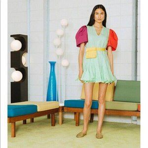 Rhode Resort Vivienne Ella Ruffle Mini Dress Cotton Voile Beach Solid XS