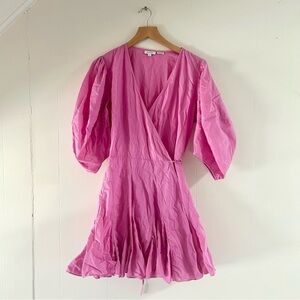 Rhode Rosie Puff Sleeve Wrap Dress in Prism Pink sz M