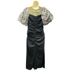Rhode Ruched Dress with Puff Sleeves in Black NWT Size Small