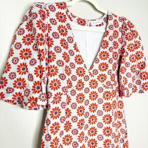 Rhode Womens Mariana Dress Floral Print V-Neck Short Sleeve Retro Fleur Size 12