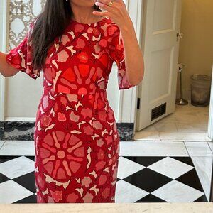 Rhode X Target Women's Zinnia Floral Print Bell Sleeve Midi Dress Red/Pink