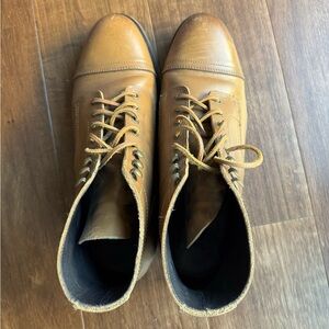 Some wear that will come off with a good cleaning. Too small for me. Soles are in good condition.