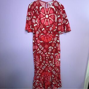 Rhode x Target Midi Dress Red Zinnia Print Boho Bell Sleeve Ruffle Casual Size 8