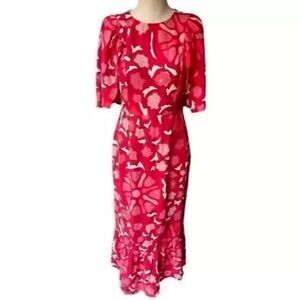 Rhode x Target Midi Red Floral Linen Blend Bell Sleeve Dress size 18