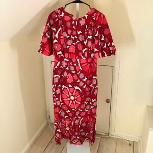 Rhode x Target NWT Women's Large Zinnia Floral Print Bell Sleeve Midi Dress Red/Pink Size 8 - missing neck button (see picture)