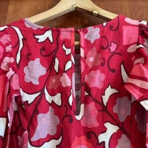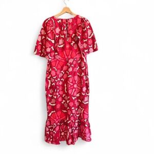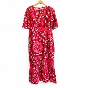 Rhode x Target Red Pink Zinnia Floral Midi Dress Size 10 Linen Rayon