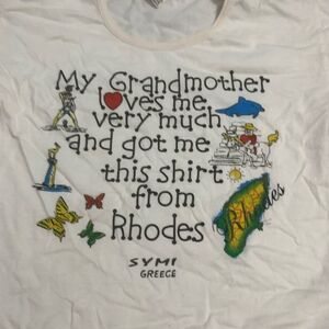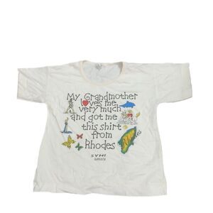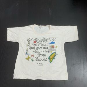 Toddler girls super cute white cotton multicolored graphic souvenirs Rhodes Greece T-shirt. Excellent condition. Toddler size XS-4/5.