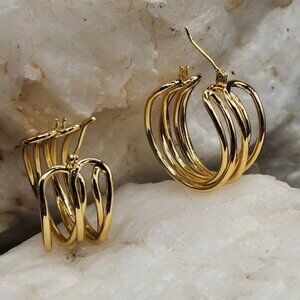 Rhodium/ 18 kt Gold Plated Hoops Earrings/Studs Contemporary Design
