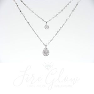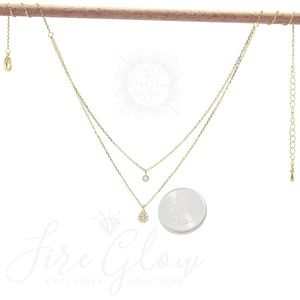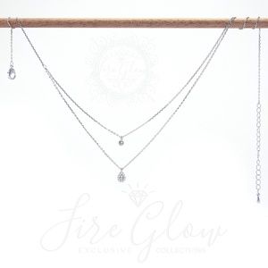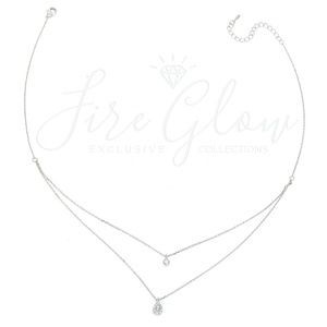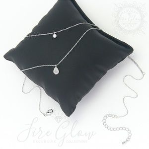This stylish dainty necklace features two Rhodium dipped tiers and a single round Rhinestone charm and 12 rhinestone teardrop charm accents. Beautifully made and high quality. This versatile necklace is perfect to dress up or down. Pair with your favorite cocktail dress, casual skinny jeans or wear to work. Material: Rhodium with white lustrous rhinestones. Bundle to save/Fast shipping offered. AVAILABLE IN 18K GOLD DIPPED!