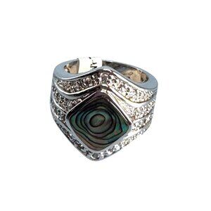 Rhodium Electroplated Ring Abalone Shell Cubic Zirconia Accents Size 6 NWT