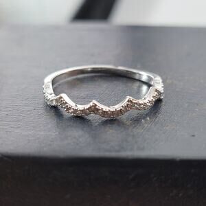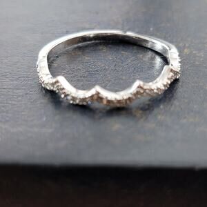 Rhodium Plated Chevron Band with Simulated Diamonds - Size 9