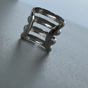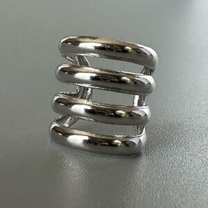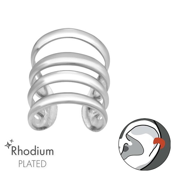 Rhodium Plated Four-Band Ear Cuff – Modern Wide Cuff Look, No Piercing Needed