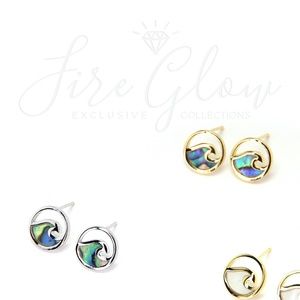 Beautiful Rhodium plated setting frames this vibrant colored oyster , a gorgeous accessory to any look. AVAILABLE IN THREE COLORS INCLUDING 18K GOLD (See photos). Great for any occasion. Our Rhodium Plated Oyster Shell Wave Earrings are a stunning addition to everyone's collection. Every shell different and unique. (Shell patterns vary).