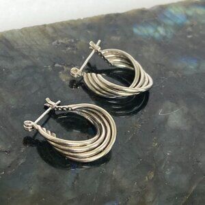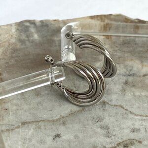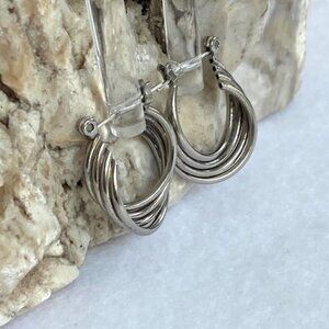 Rhodium Plated Sterling Silver 925 20MM Multi Ring Twisted Hoop Earrings Hinged