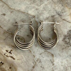 Rhodium Plated Sterling Silver 925 20MM Quadruple Twisted Multi Ring Hoop Earrings