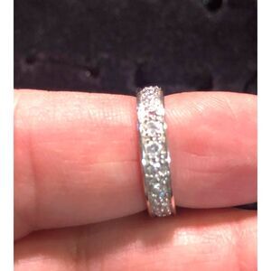 Rhodium over 925 Sterling Silver with Cubic Zirconia Encrusted Band, Size 5