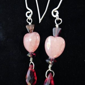 Rhodochrosite Hearts Garnet Gemstone Swarovski® Crystal Earrings by Konnie K
