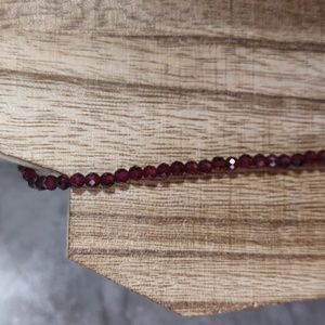 Sparkling faceted rhodolite garnets in a deep plum/wine with a sterling silver lobster claw clasp.
