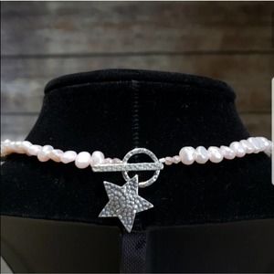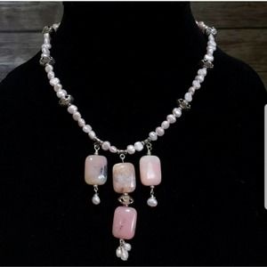 Rhodonite & Pearl Sterling Silver 4pc set Signed Bracelet Necklace Earrings