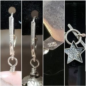 4 piece rhodonite and cultured fresh water light pink pearl set in a sterling silver setting. Necklace is marked with a maker's mark but it is an unknown artisan to me. This set COULD be vintage but no info was provided when I took possession. All pieces are in excellent condition. Necklace measures 16 3/4", bracelet 7 7/8" L x 5/8" W, rhodonite earrings 1 1/2" L x 5/8" W, pearl earrings 1 1/2" L x 1/2". Total weight of all pieces is 96 g. All marked 925 (pic 10) Earrings are lever back