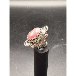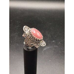 Tags: Rhodonite Ring, Sterling Silver, Wide ring, Elongated, Bold Ornate, ornate Setting, Size 7 ring, filigree ring, natural stone, rhodonite, gemstone ring, women jewelry, birthday present, stone ring, promise ring