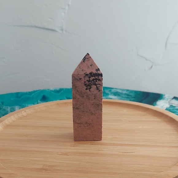 Elegant pink stone tower with black marbling. Perfect for decor or collection. 3.25" tall 1.25" wide. Known as the "Rescue" stone. Believed to suppress anxiety and heal broken hearts. You will get this exact stone.