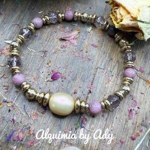 Rhodonite beaded bracelet/ heart chakra healing crystal