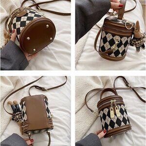 Features: Stylish faux leather bag featuring a trendy quilted design in a compact size. Comes with a cute bunny pendant for a fun, feminine touch. Versatile with a top handle and shoulder strap, easy to carry in multiple ways for everyday use or dressier occasions.