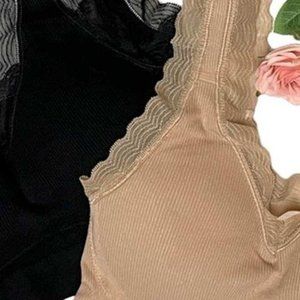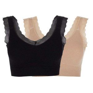 Rhonda Shear 2pk Forever Stretch Ahh Ribbed Knit Bra w/Lace Trim X LARGE