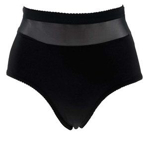 Rise: Slightly above waist. Embellishment: Mesh inset