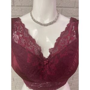 Rhonda Shear Burgandy Lace Pin-Up Bralette Size XL