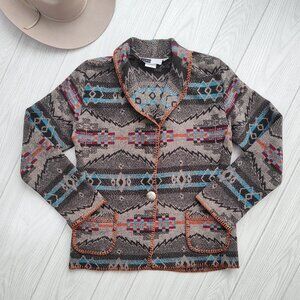 Rhonda Stark Blanket Jacket Wool Blend Concho Western Long Blazer Aztec USA M