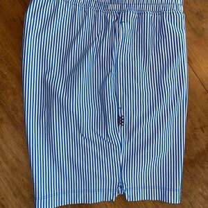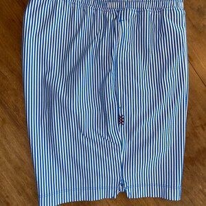 Blue/White- no liner, 7" inseam, drawstring, 2 slant front pocket
