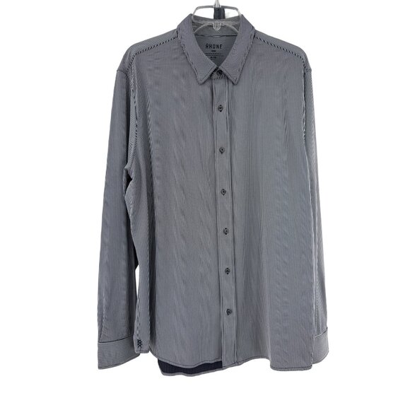 Rhone Mens Striped Button-Up Shirt XL Black & White Cotton Blend