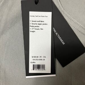 Rhone Pants Mens 28 x 33 Grey Griffin Slim Straight Everyday Twill 5 Pocket Stretch Classic Everyday Business Casual Neutral Date Night Versatile