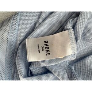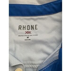 Keywords: Rhone, polo shirt, mens polo, golf shirt, athletic polo, striped polo, short sleeve polo, casual shirt, menswear, size M, blue polo, gray polo, sportswear, performance polo, golf apparel