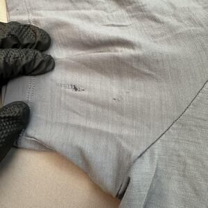 Condition: Fair used condition with a notable flaw - there is a hole and additional damage on the left sleeve near the armpit as shown in the photos. General signs of moderate wear throughout.