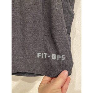 Heathered dark gray color with "FIT•OPS" logo on front hem