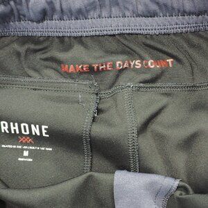 These pants are in good preowned condition. There is an aftermarket Logo on the back of the leg. There is some cracking in the main Rhone logo on the front. There are no holes or stains noted.