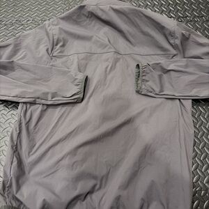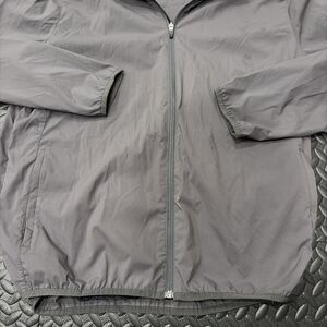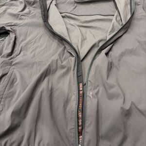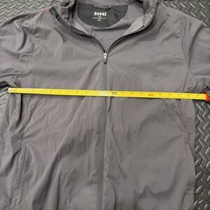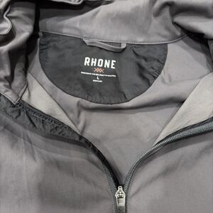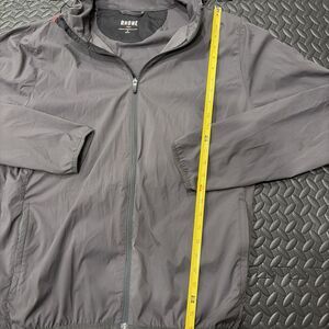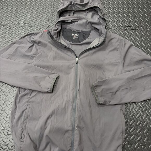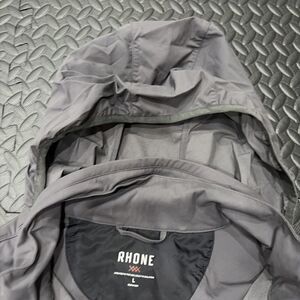 Rhone Tech Jacket Mens L Gray Full Zip Jacket Hidden Hood Rain Wind Retail $120