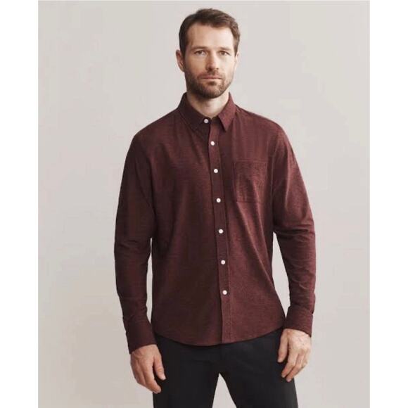 Rhone WFH Button Up Shirt Jersey Stretch $128 NWT Maroon Tawny Port Black LARGE