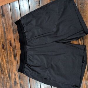 thick elastic waistband with inner drawstring built in shorts liner size medium 7" inseam the waist band is a little "wavy" but it straightens out when wearing and still has full elasticity. good condition