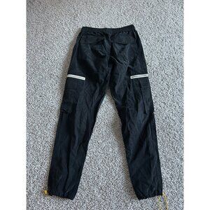 Rhude Black Cargo Track Pants W/ Yellow Drawstring & Zippered Pockets