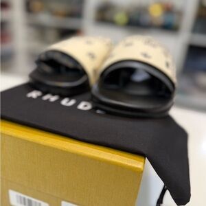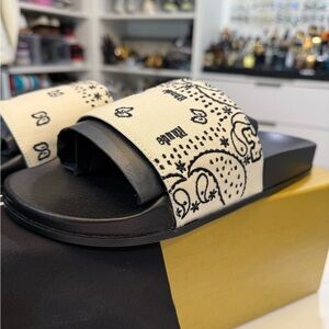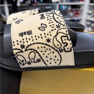 Comfortable and stylish kids slide sandals in black and cream. Perfect for everyday wear.