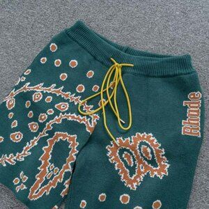 Rhude Brown Jacquard Logo Knit Shorts Green