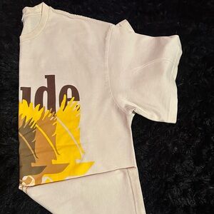 Stylish Rhude tee with bold graphic. Cream base with yellow accents.