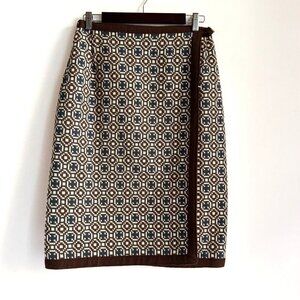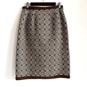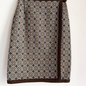 Rhydybont Woolens Wool Geometric Pront Blue Brown Wrap Skirt M.