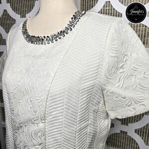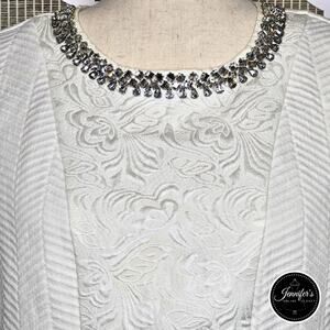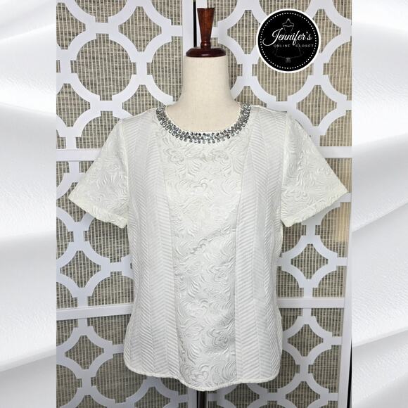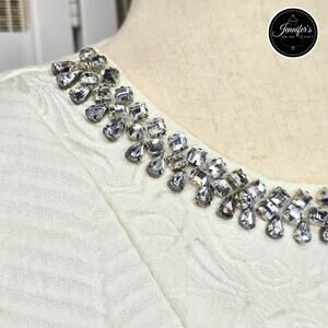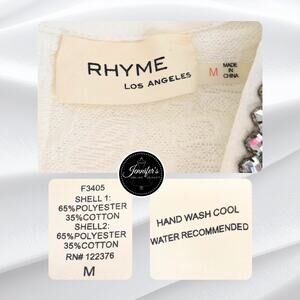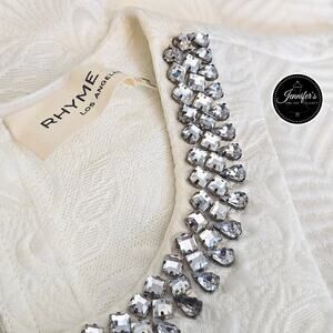 Rhyme Los Angeles Cream Floral & Herringbone Rhinestone Embellished Blouse M