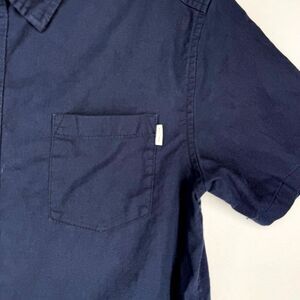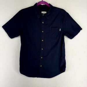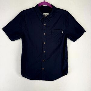 Rhythm. Mens Dark Blue Linen Blend Short Sleeve Button Down Shirt Size S