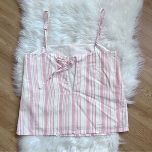 Rhythm. Top in Pink and White striped print . Features adjustable straps, fully lined and tie closure detail on back. Great summer top! Preloved, worn once like new. Zero flaws.